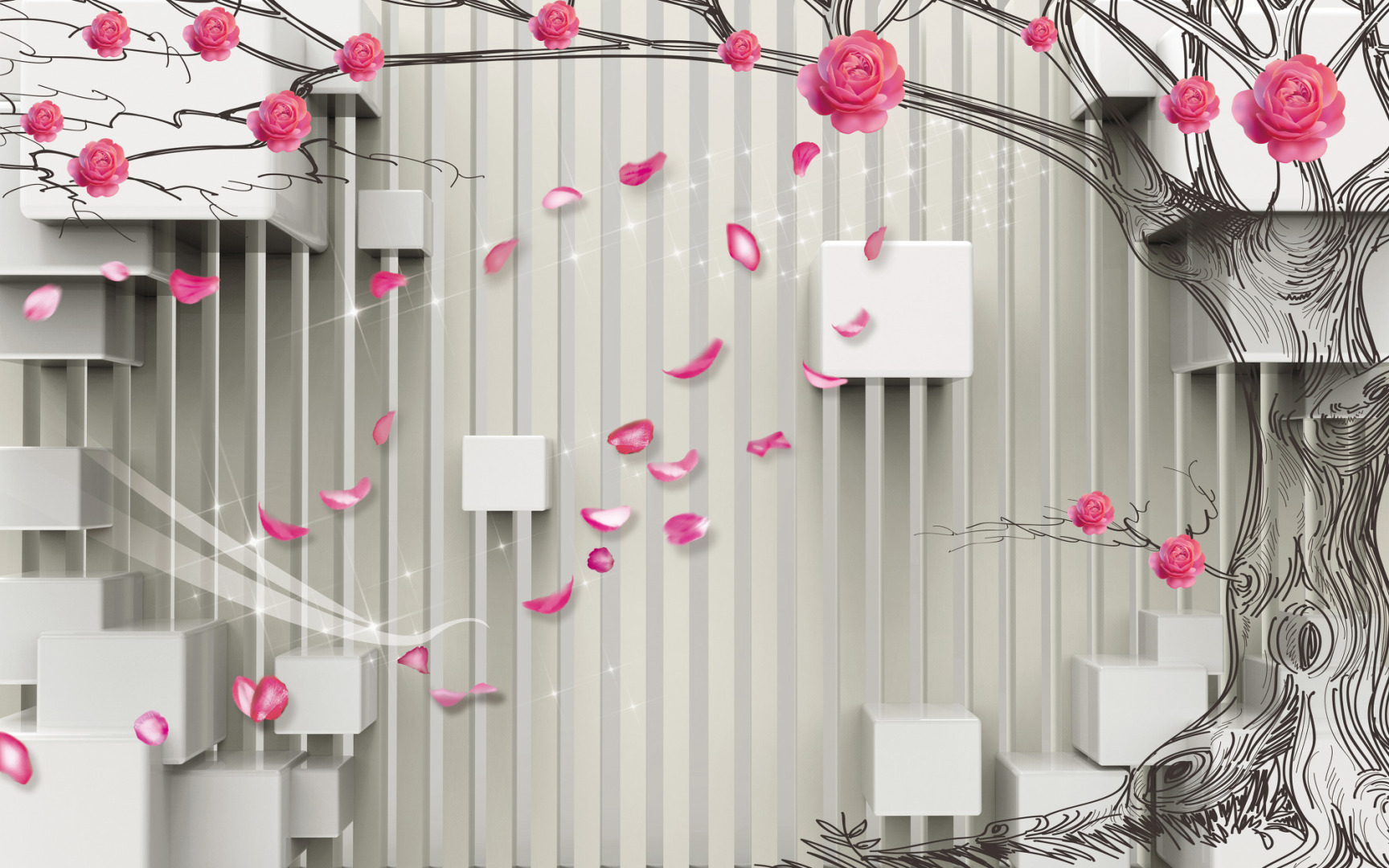 Розовый сад в 3D
